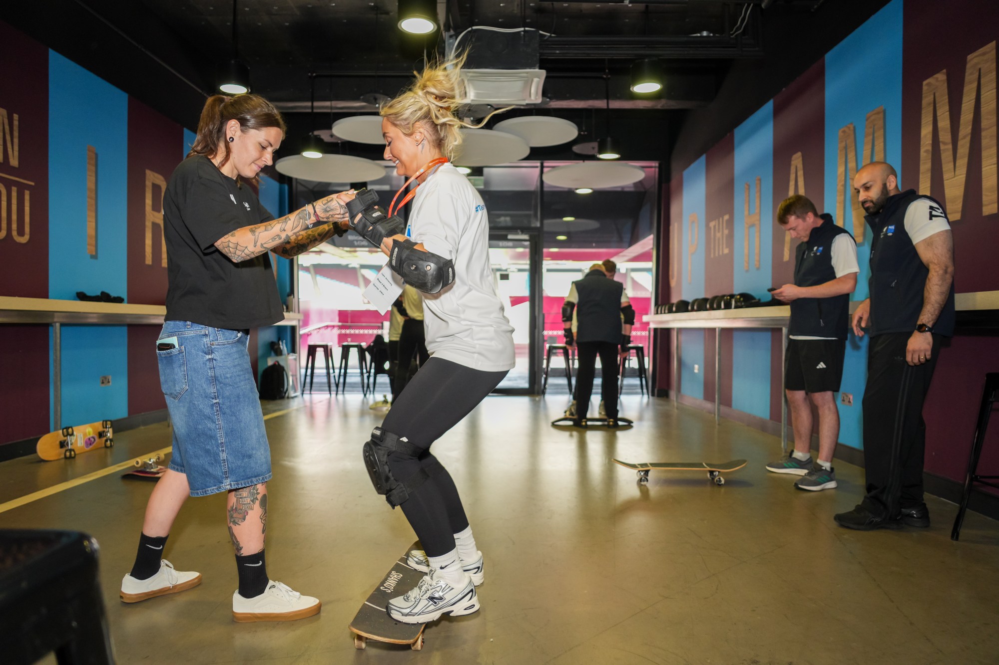 Alongside the board design and construction activity, one member from each team had to have a 10-minute lesson with Cath, to learn a pancake flip and secure bonus points!