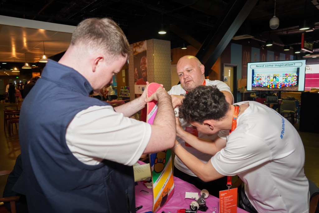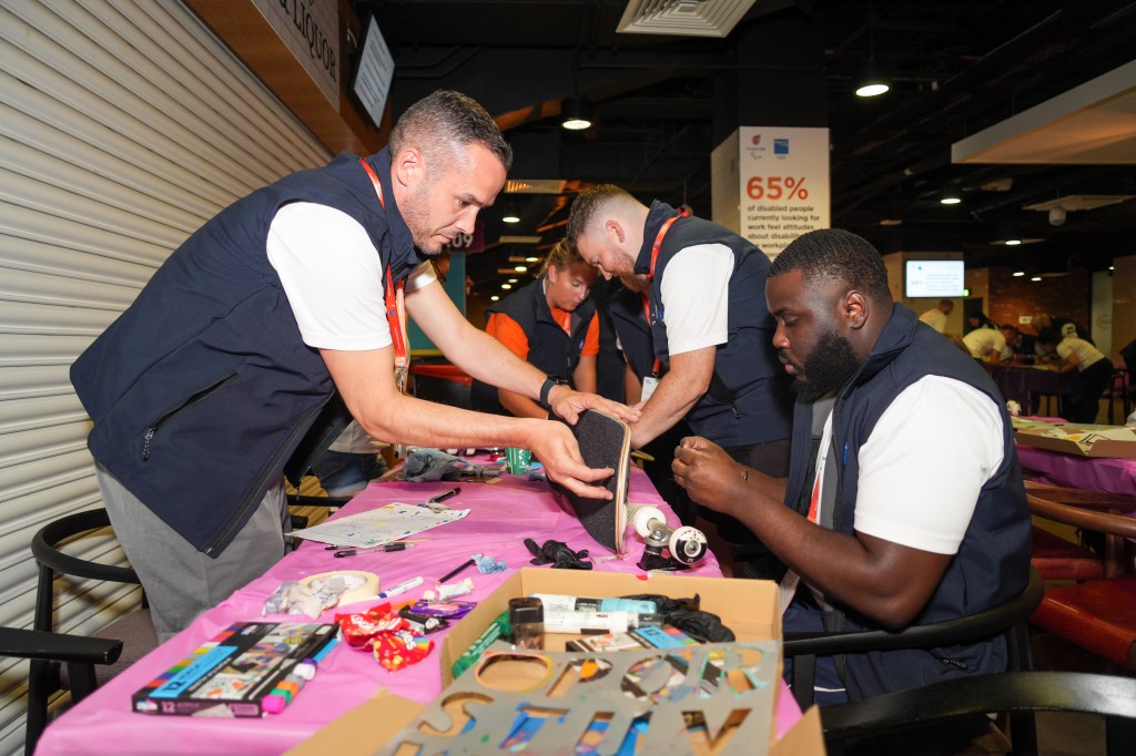 Our role for the day was supporting o3e in the delivery of the ‘Charity Challenge’, where 56 teams competed to win points by designing, constructing and pitching 112 skateboards, which would later be donated to various charities across the UK.
